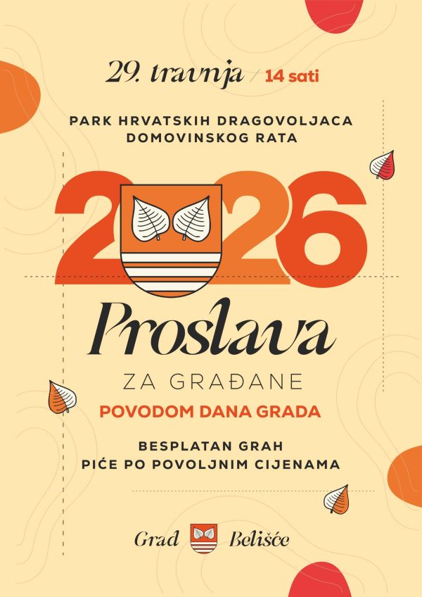 Grad Belišće poziva sve građane na zajedničku proslavu povodom Dana grada koja će se održati 29. travnja s početkom u 14 sati u Parku hrvatskih dragovoljaca Domovinskog rata.